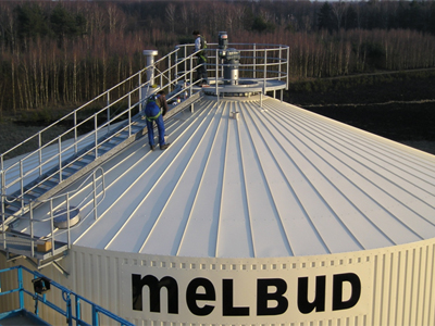 - Durch unsere spezielle Montagetechnik verarbeiten wir Trapezblech mit bis zu 12 m1 Länge. So ergeben sich am Behälter – je nach Höhe – keine oder nur sehr wenige Querstöße.