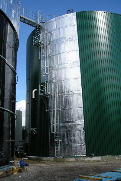 - speziell auf den jeweiligen Behälterumfang geformte und vorgefertigte C-Profile sowie eine Trennlage zwischen C-Profil und Haltewinkel (Verhinderung von Wärme bzw. Kältebrücken) sowie statische Berechnungen der Wind- und Schneelasten