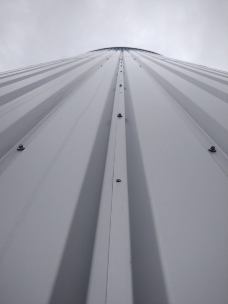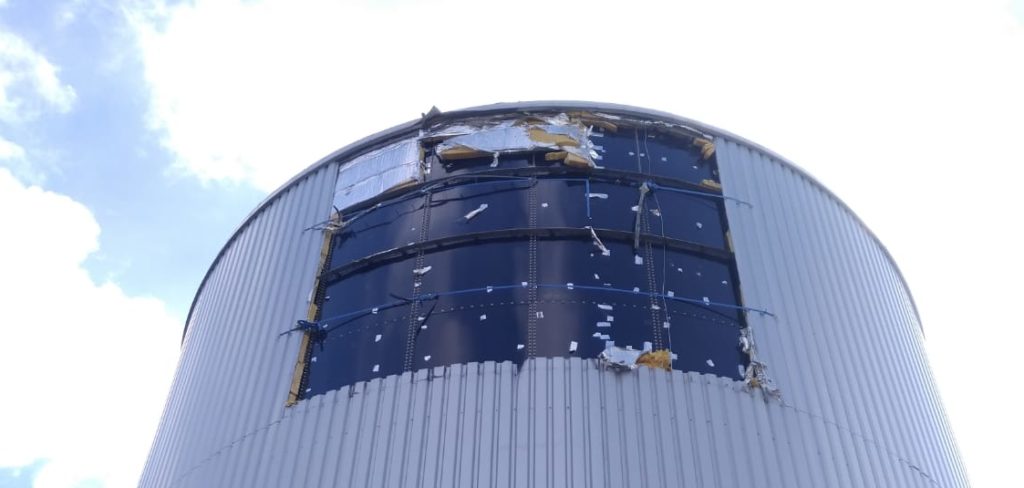 An einem nicht von uns isolierten Behälter bei Wien fehlten nach heftigem Sturm mehrere Bleche und die darunter liegende Isolierung.